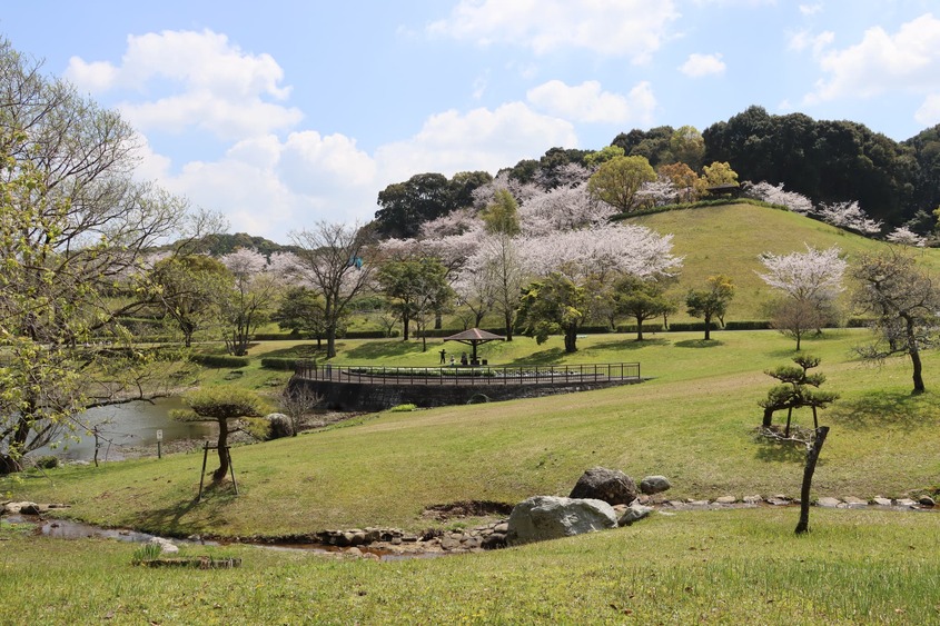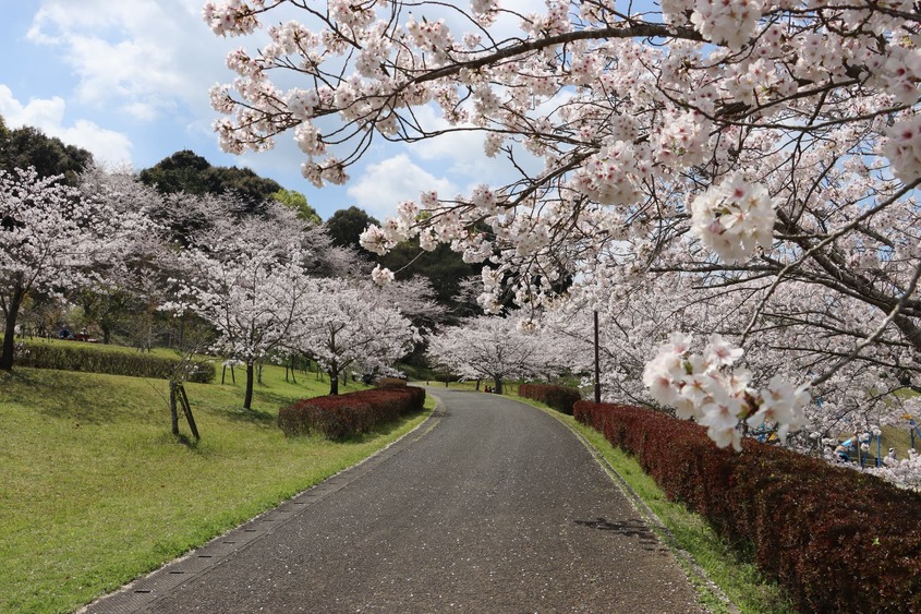 西の久保公園の中に曲がりくねった坂道があり、そこは桜並木となっています。 芝生が生い茂った広場もあります。 上から池を見下ろす景色はとても綺麗です。