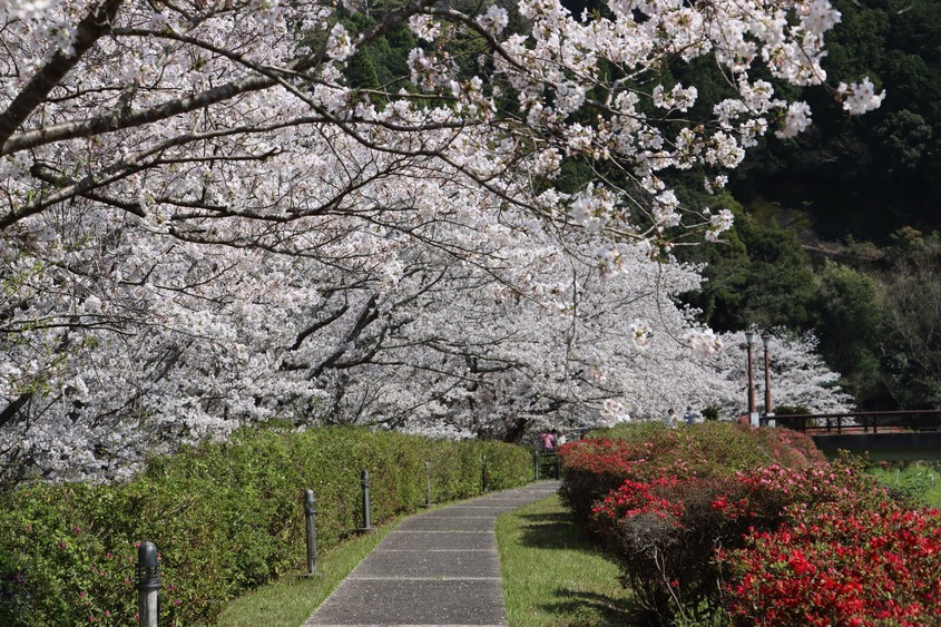 河浦支所の裏にある桜並木 川沿いに桜が咲き乱れます