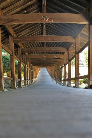 Closely associated with the figure believed to have inspired the famous Japanese folktale Momotaro, the Kibitsujinja Shrine is a National Treasure of Japan, officially listed as “The Main Sanctuary and the Worship Hall of the Kibitsujinja Shrine.” The roof of the Main Sanctuary in the style of "Hiyoku Irimoya Zukuri (the winged East Asian hip-and-gable) Roof" is the only one of its kind in Japan, thus also called "Kibitsu Zukuri." The most breathtaking and overwhelming feature of the shrine for the visitors is the 400-meter-long corridor from the Main Sanctuary which has been designated an Important Cultural Property of Okayama Prefecture.