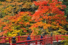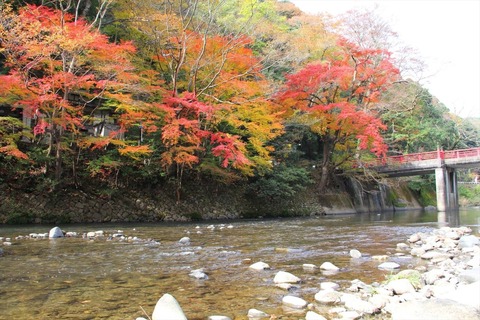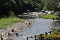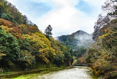 This is one of the prefectural nature parks in the upper reaches of the Takahashi River: the Oda River Valley. Over a stretch of 1 km, towering trees and old trees, such as maples, cast their shado...