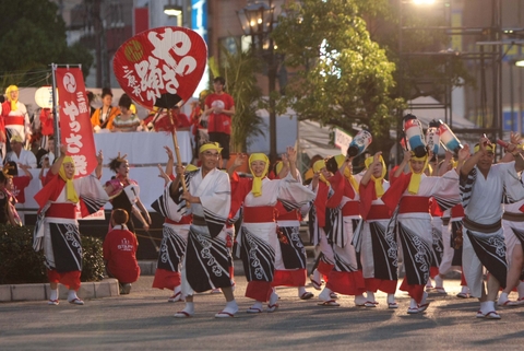 祭りの見どころは、子どもから大人まで約4,000人の踊り手が”やっさ、やっさ”の掛け声でまちを練り歩く「やっさ踊り」。小早... -