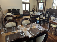 大正10年(1922年)築の、網干銀行だったという歴史的建築物を改装し、レストランとして営業しているお店。当時の建築様式をそのまま残す歴史薫る風格とモダンな設えを融合させた空間で、くつろぎの時間を過ごせる。