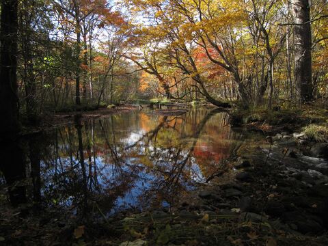 四季折々の風景が楽しめる市民のオアシス。クマゲラやヤマセミなど希少種の野鳥も生息し、バードウォッチングに最適です。