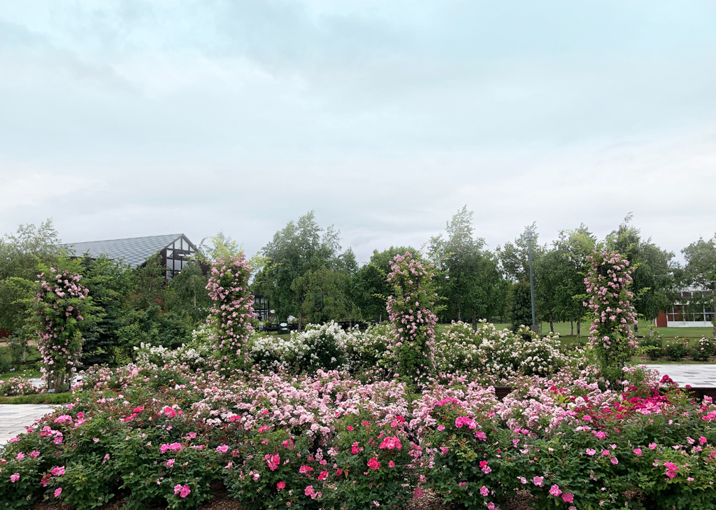 約 4 万平方メートルの敷地内には約630品種8800株のバラと北海道原産のバラの原種であるハマナスが咲く北海道最大級のバラ園。