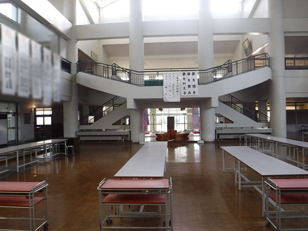 2022年度で廃校となった中学校で、校舎には教室のほか音楽室・家庭科室・美術室・技術室・理科室・図書室の状態が保存されています。机や椅子などの備品が揃っているほか、電気・水道も使用することができます(2025年3月時点)。