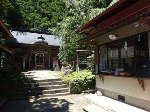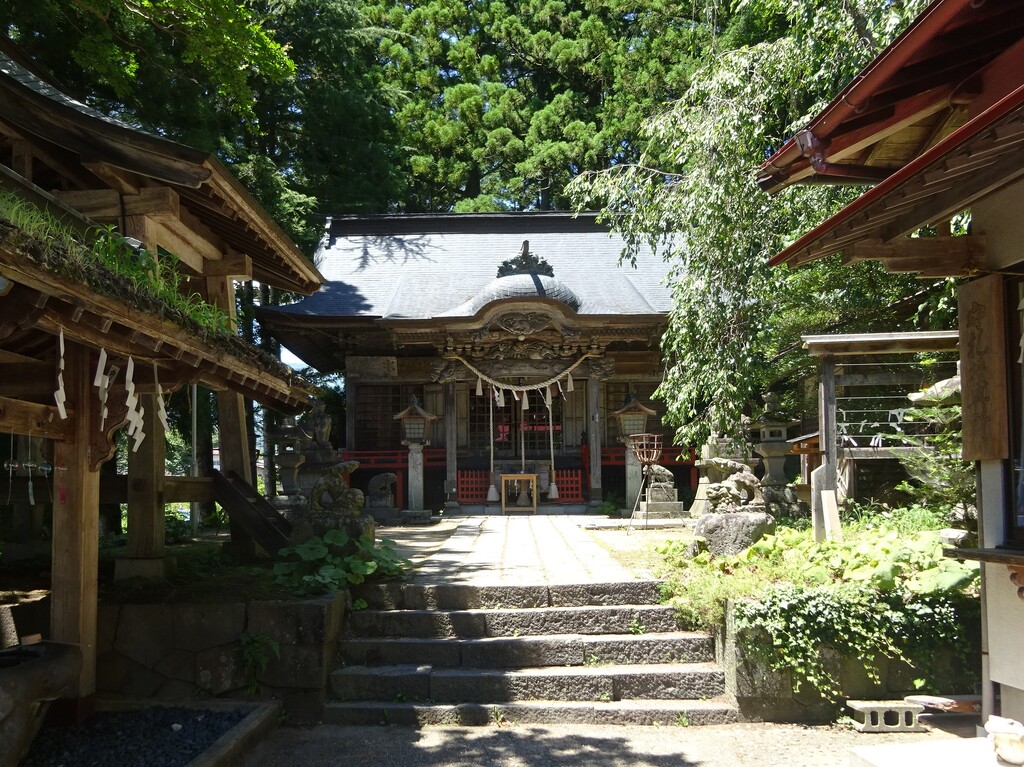 遠刈田温泉街のほど近くにあり、石段を上った先に本殿・拝殿を構える。蔵王連峰・刈田山頂にある刈田嶺神社の里宮として、冬の間はご神体が本殿に移されます。拝殿内の絵馬は蔵王町指定文化財となっています。