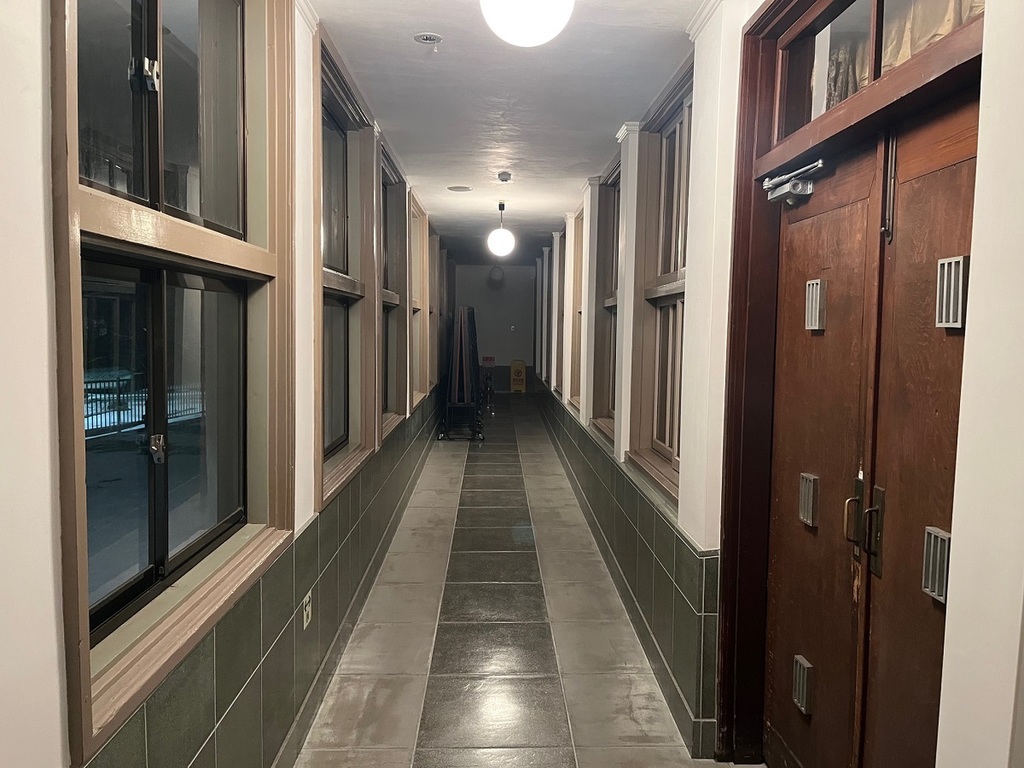 天井から吊るされている照明は、当時からの物で東日本大震災の時にも壊れることなく残っている。