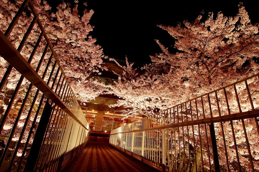 - 「能代市役所さくら庭」は目線の高さで桜を楽しむことができる名所で、夜間のライトアップされた夜桜もとても素敵です。