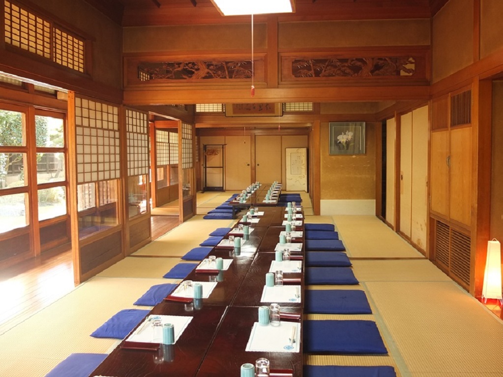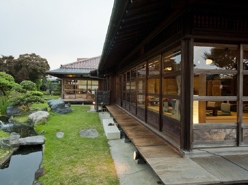 2008年に伝統的な技術建築の美しさから国の登録有形文化財に指定されました。庭園を眺めながら四季折々の御料理を堪能でき、地元やご旅行の方々に幅広く利用されています。