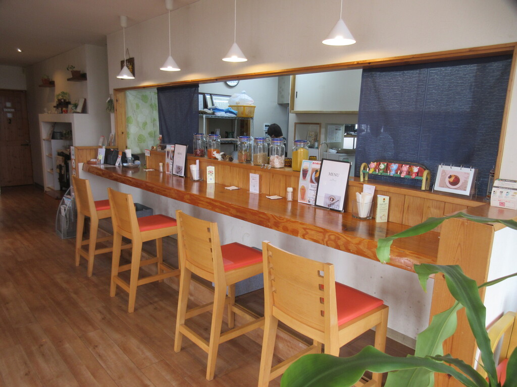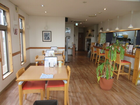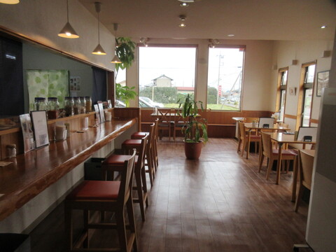東側に配した大きな窓から日差しが降り注ぐ、白を基調とした明るい店内です。
