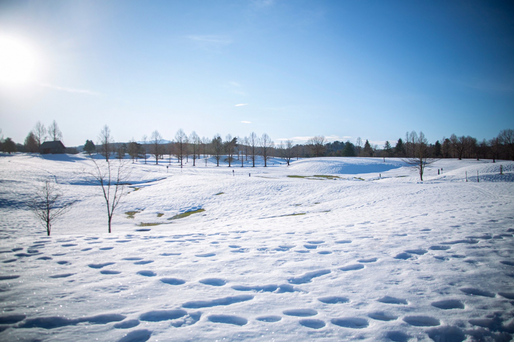 小高い丘陵地帯。牧場のために開かれた広大な草原で、天気のいい日には近隣の粟ヶ岳や守門岳が美しい姿を見せます。春から秋は緑の草原で、冬はあたり一面雪で覆われ真っ白な世界が広がります。丘になっていることから、周囲のあかりは入り込まず、切り取られた空に星がきらめきます。