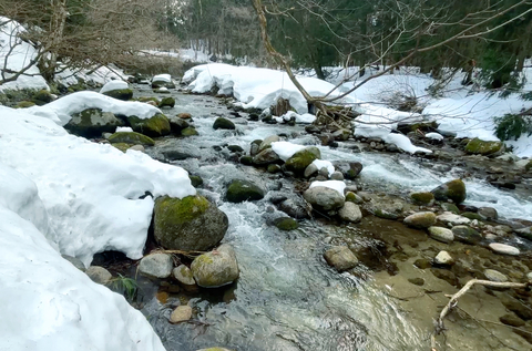 キャンプ場脇を川が流れる自然あふれる場所なので、近くに現代物もありません。