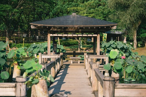 世界の花はす約130種が見られる鑑賞蓮園、蓮見台などがあります。7~8月にかけては、はすまつりが開催され、花はすをテーマにしたイベントが繰り広げられます。