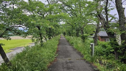 九頭竜川右岸に約1.5kmにわたって続く弁天桜並木。
