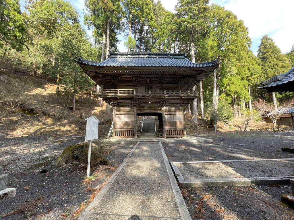 境内には越前市指定文化財の山門があり、杉木立に囲まれた静寂な空間が広がります。