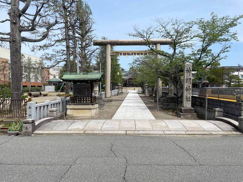 「神明神社」は、地域の人々から篤い信仰を集めてきた古社です。御祭神は天照大神で、江戸時代には城下町の発展とともに町の守護神として崇められました。特に火災や災厄から町を守る神として信じられ、商人や住民の暮らしに深く結びついてきました。境内は市街地にありながら静かな空間で、四季折々の参拝風景を楽しむことができます。