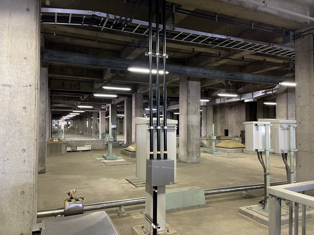 施設内には、施設(建物)間を繋ぐ管廊(地下通路)や国内では珍しい屋内型の汚泥焼却設備があります。