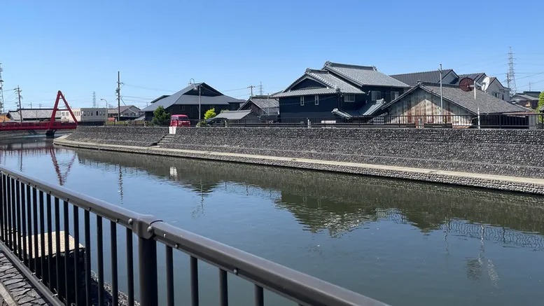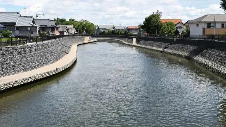 夏にはユネスコ文化遺産「須成まつり」が執り行われる須成地区を流れる蟹江川。緩やかに蛇行しながらゆっくりと流れる川。