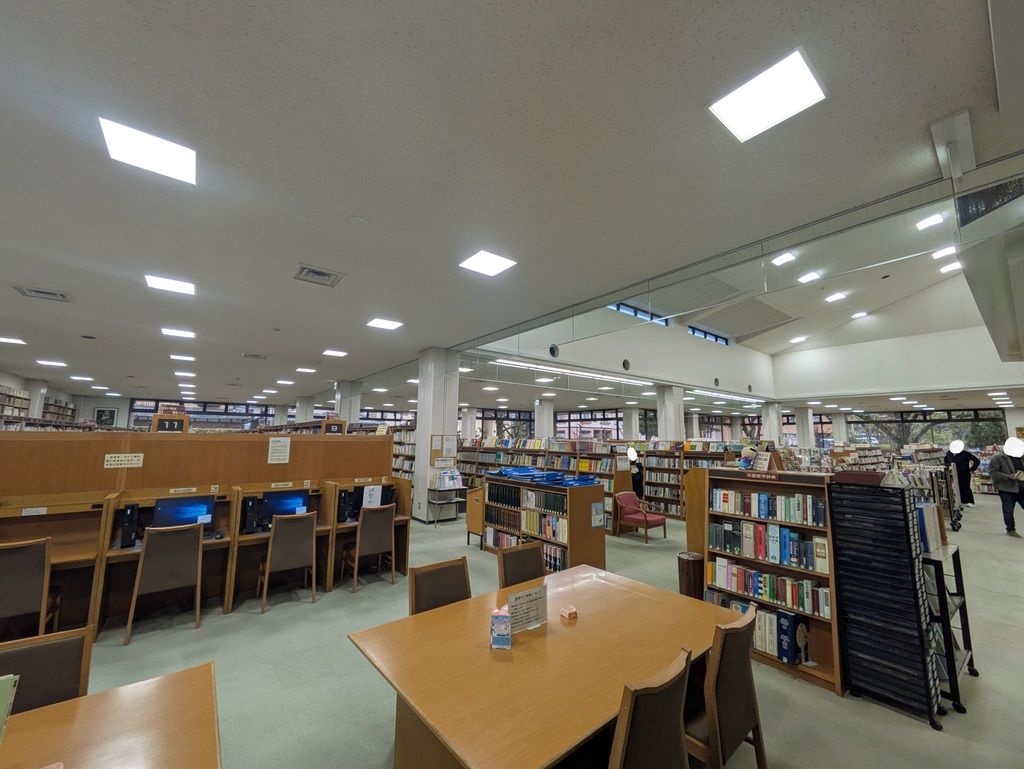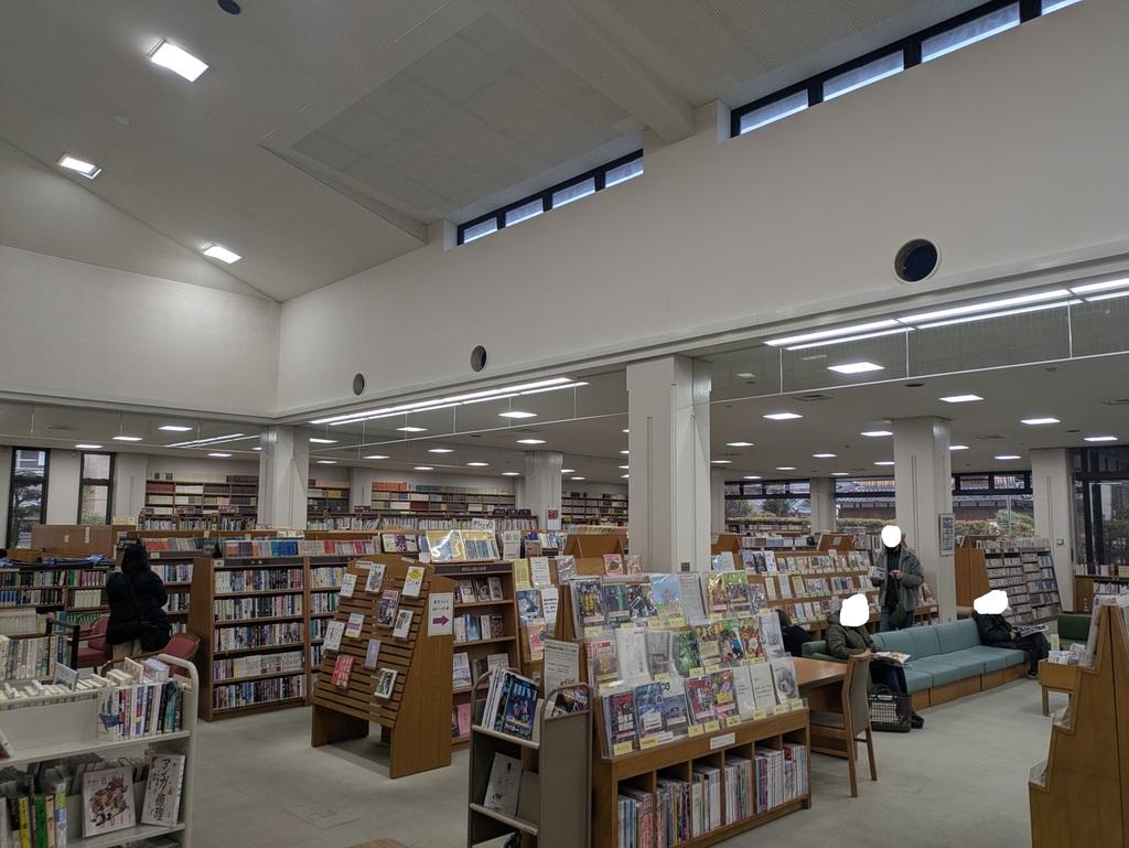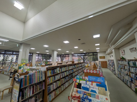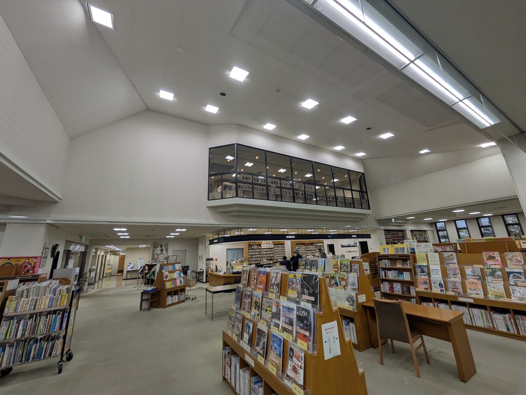 一般図書から児童書まで、すべての図書が1フロアでまとまっている広々とした図書コーナーが特徴的。