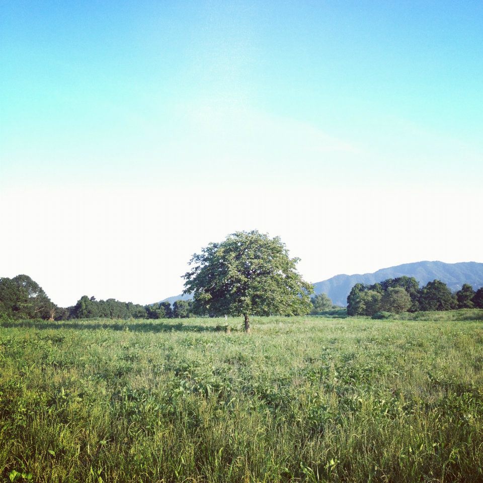 山道を登っていくと、一気に景色が広がり、北海道を思わせる拓けた場所。