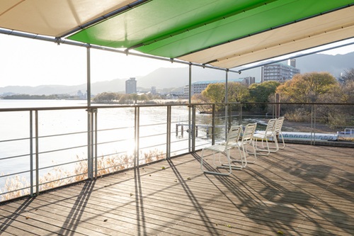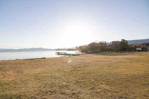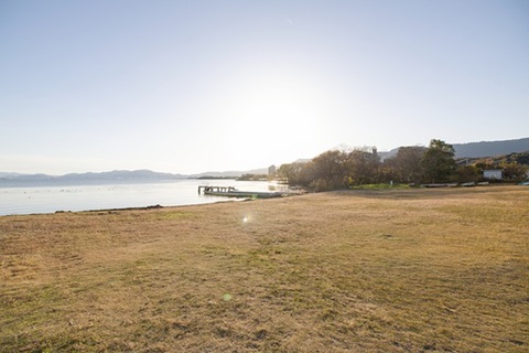琵琶湖の雄大な水面と比叡山を望む自然豊かなロケーション。湖畔の広々としたスペースと水辺のアクティビティ設備を活かし、非日常感あふれるシーンを演出できます。
