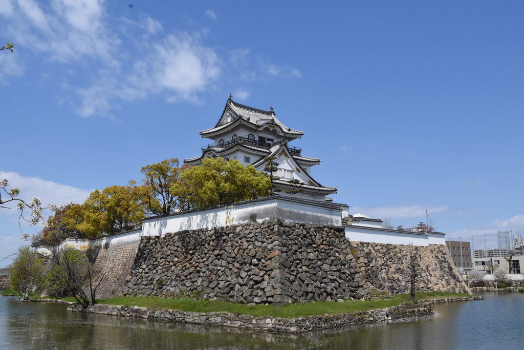 - 羽柴秀吉は紀州根来寺討滅後、小出秀政を城主とし、秀政によって城郭整備され天守閣が築かれました。天守閣は文政10年に落雷で焼失、維新期には櫓・門など城郭施設を破壊したため、近世以前の建造物は堀と石垣以外には残存していません。現天守閣は3層3階の天守です(昭和29年建造)。城跡は昭和18年に大阪府指定史跡に。
