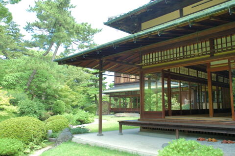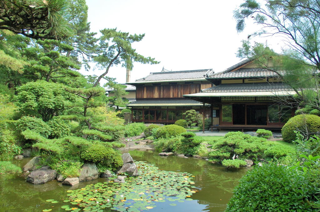 - 旧岸和田城内の新御茶屋跡などに昭和4年から10カ年の歳月を要し、造営された広壮な回遊式日本庭園。市指定名勝にもなっており、一般公開されている美しい庭園には、鯉の泳ぐ池と近代日本建築の粋をこらした母屋が絶妙に配置されており、和風建築と回遊式庭園が織りなす風景は歴史を感じる景観である。