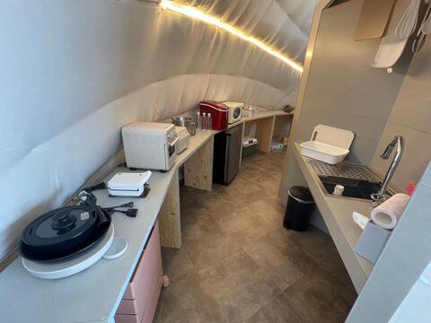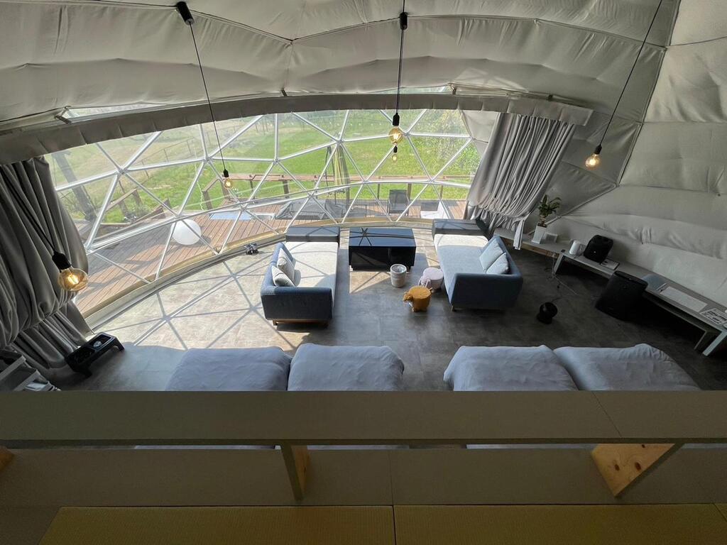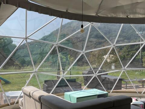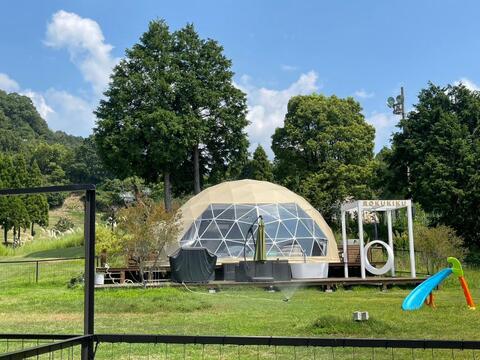 - 2024年4月にオープンした全棟専用のドッグランを付帯したドームテントが4棟あるグランピング施設。菊水ゴルフクラブの旧3番4番ホールを使用して建てており、周りは山に囲まれながら海まで見える、自然あふれたロケーションが特徴。