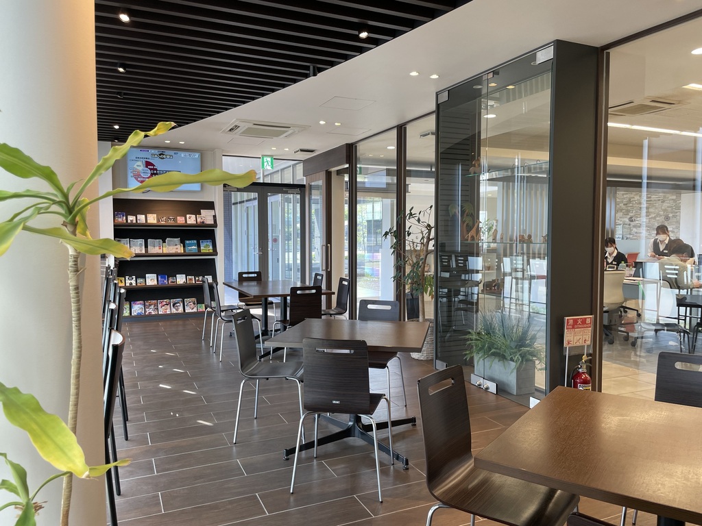 新社屋ではカフェスペースをはじめ、図書室、キッズルームなどを完備する。