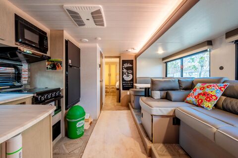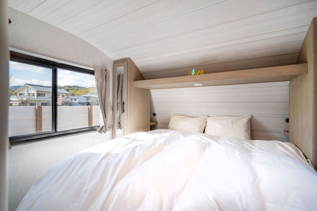 全室にダブルベットとベッドが2つ、簡易キッチンと、室内シャワー・屋外にはジェットバスやバーベキューテラスなどの設備充実のハワイアンリゾートが満喫できるトレーラーハウスで快適で思い出に残るグランピングを体感してください。