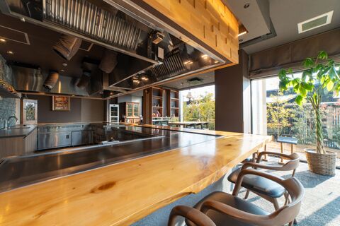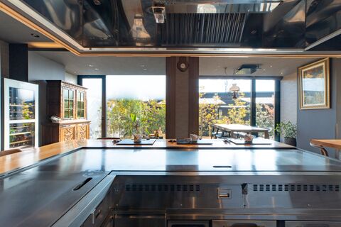 - シェフが厳選した国産牛や淡路島産の野菜、新鮮な魚介類などの食材を目の前の鉄板で豪快に焼き上げ、お客様の舌をうならせます。厳選した種類豊富なワインと共に、豪華鉄板焼コース料理をお楽しみください。