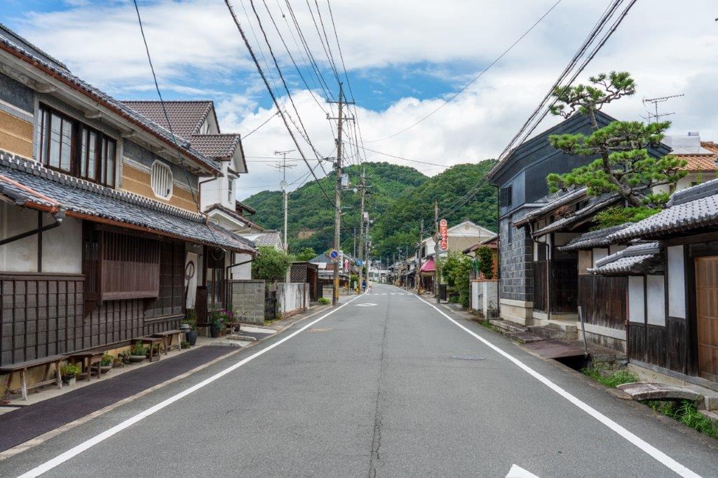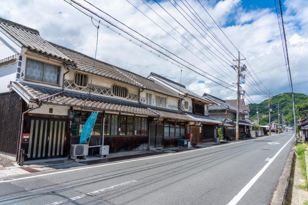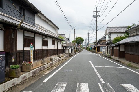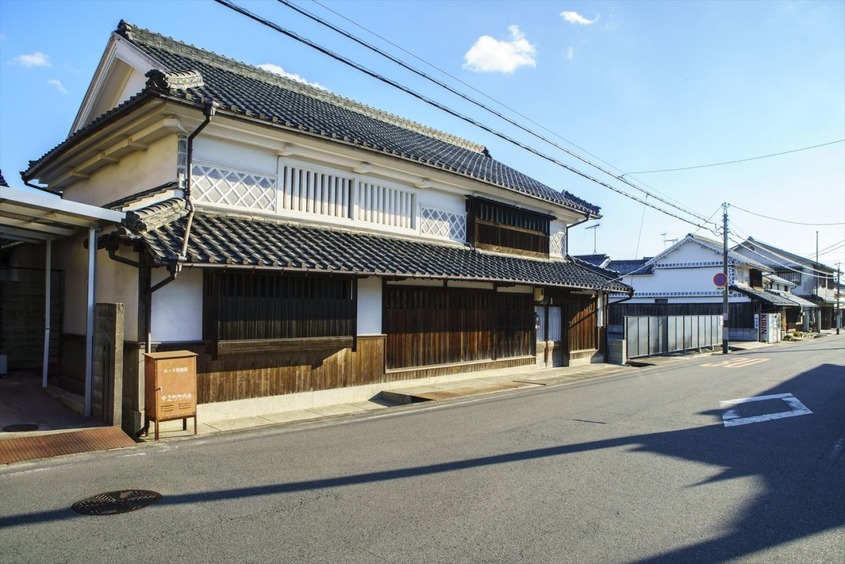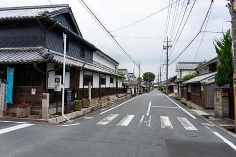 平入りで奥行きのある商家,静かな落ち着いた町並みである。