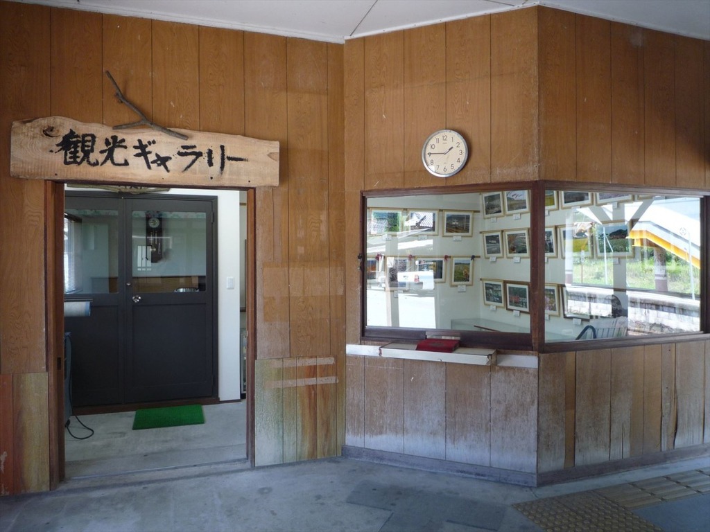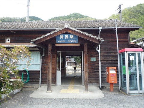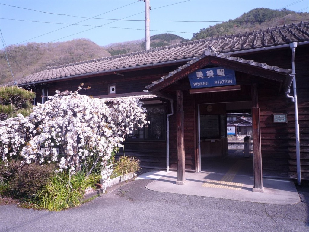JR伯備線の美袋駅の駅舎。大正14年に開業されたままの古風なたたずまいは郷愁を誘う。平成19年には登録有形文化財に指定。