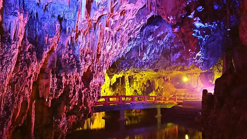 洞内延長はそれほど長くはないが,洞窟博物館といわれるほど洞内の変化は素晴らしく、時の経つのも忘れるほどです。LED照明でライトアップされて幻想的な空間となっています。