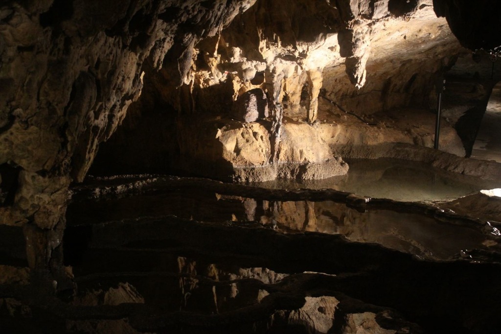 新見市内の洞穴群のなかでも開発が早く、全長約450mで奥には地底湖が広がる鍾乳洞。