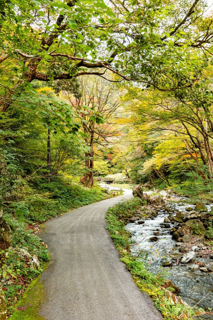 高さ110m、幅20mの断崖絶壁を落下する滝は圧巻の景色です。滝の中央には黒い岩が突起し、落下する水しぶきに逆らってのぼる鯉に似ていることから「鯉岩」と呼ばれています。また、下流には草ぶき屋根から落ちる雨だれに似た景観が美しい「玉だれの滝」があります。滝そのものはもちろんですが、滝までの2kmの渓流沿いの景色も素晴らしく、カツラやケヤキ、イタヤカエデなどの落葉樹やケグワなどのめずらしい樹木を見ることができます。また、園内には約170匹の野生の猿が生息しています。