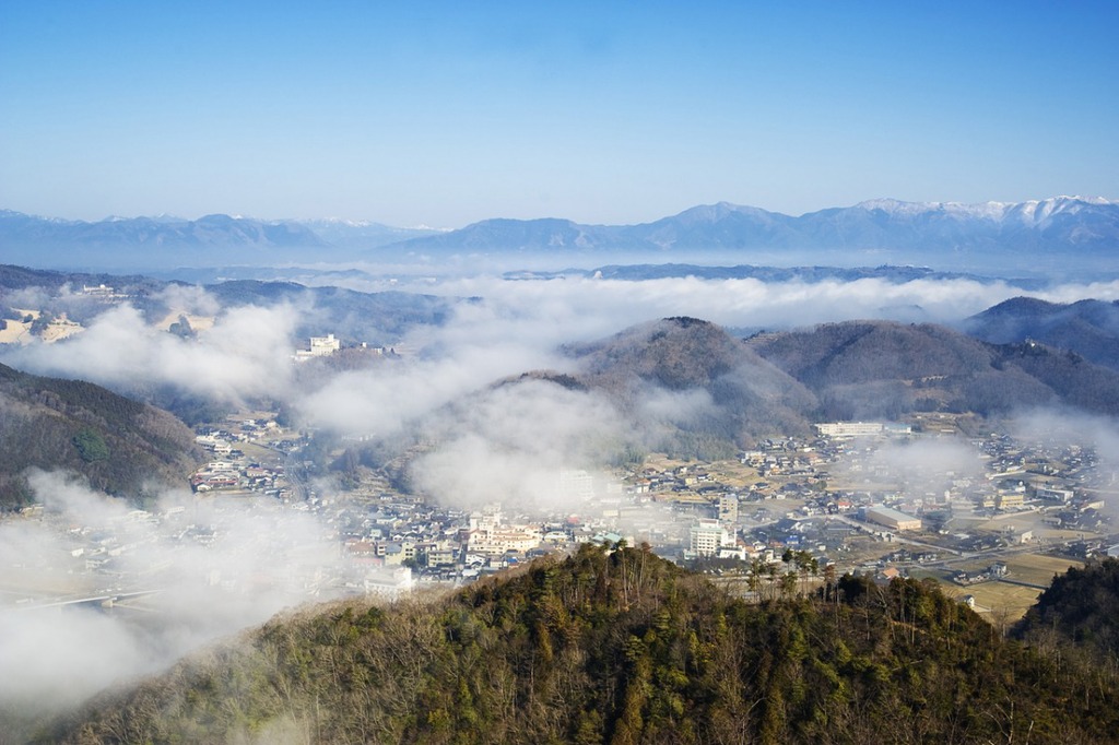 - 湯郷温泉が眼下に広がり、夜景も楽しめます。晩秋から冬にかけて見られる雲海は、とても幻想的な光景です。