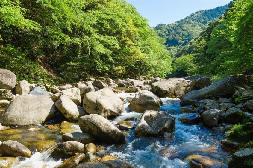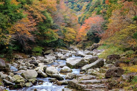 吉井川の上流、奥津川が花崗岩の峡谷を浸食してできた、巨岩あり、滝あり、渕ありの変化に富んだ延々3kmに及ぶ渓谷です。