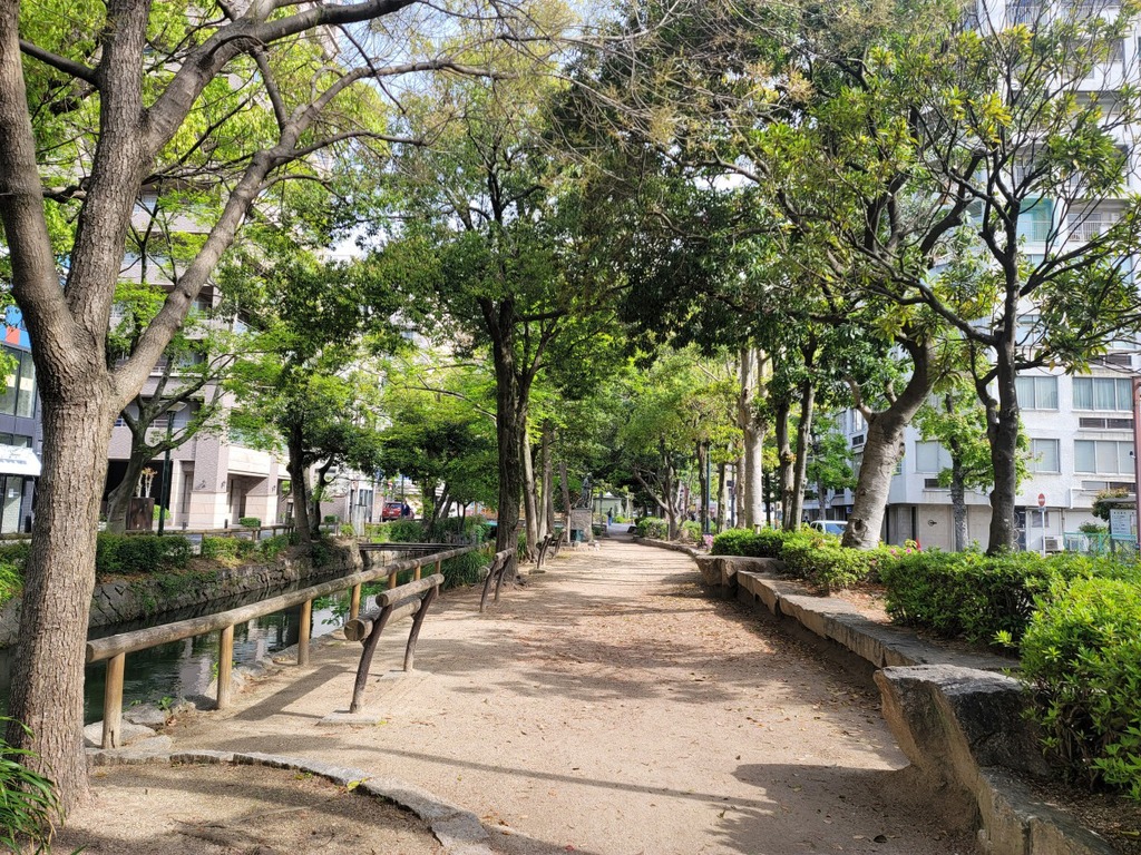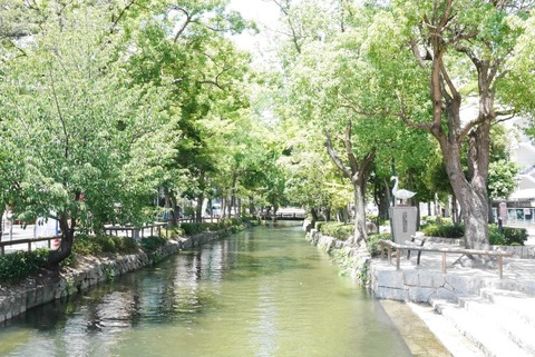 岡山市中心部を南北に流れる西川沿いの公園。公園内には約100種類の樹木約3万8千本が植樹され、春の芽生えから森林浴、秋の紅葉や草花の花壇など四季の移り変わりが楽しめる。