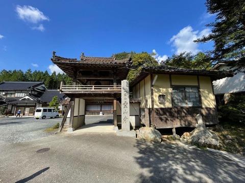 旧竹山城主新免家、宮本武蔵生家平田家代々の菩提所。山門(鐘楼門)を入ると正面に本堂と客殿、庫裏、東側に大師堂、茶室が建つ。境内には、県天然記念物の大モミジがある。