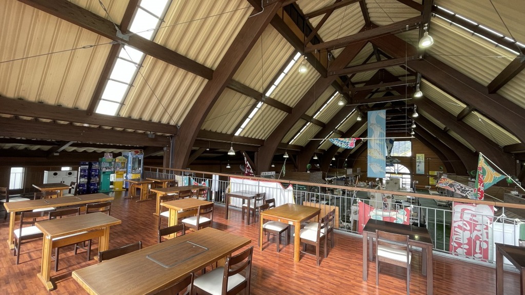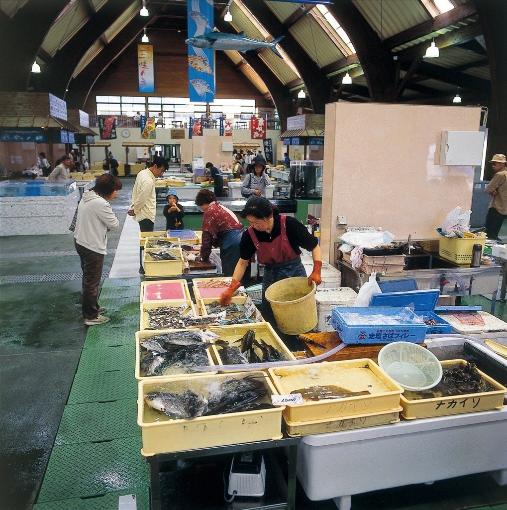 魚市場。となりで焼いて食べるスペースも。毎月第1日曜日には「ぎょぎょっと祭り」が開催。
