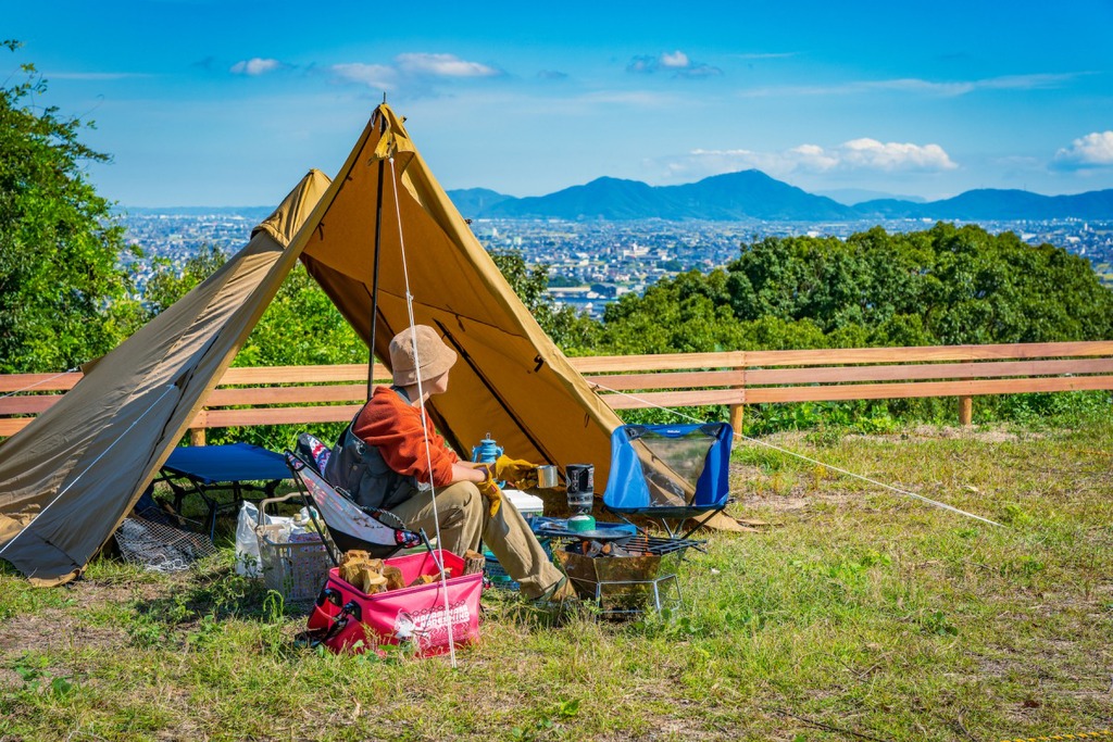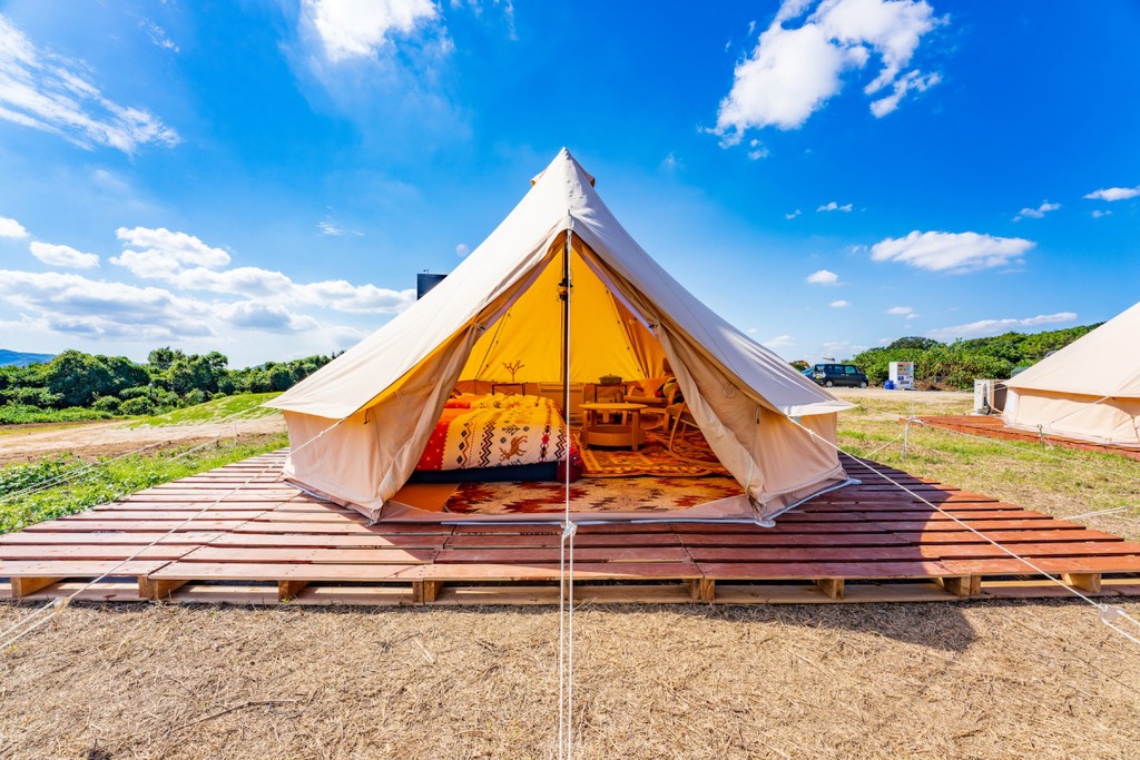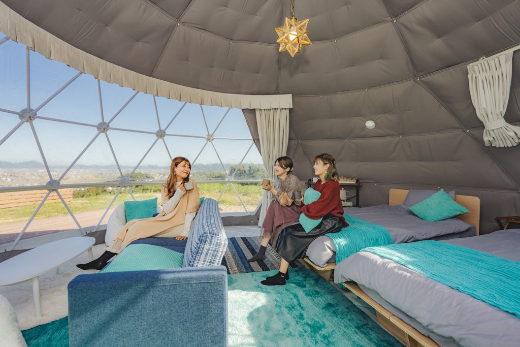 - 倉敷駅から車で15分の立地にありながら、視界いっぱいに広がる空と、開けた景色が一望できるグランピング施設。