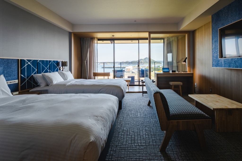 瀬戸内観光、島旅の拠点として利便性の高い立地が人気のホテル。駅、港、フェリー乗り場に近く、電車や行き交う船を部屋から撮影することが可能です。半個室のキャビンタイプの部屋からコーナースイートといったラグジュアリー層向けの部屋まであります。海側の部屋からは瀬戸内の多島美が一望できるため、水平線とは一味違ったロケーションをご覧いただけます。「天然温泉」「キャンプ場」「フットサルコート」「貸切クルージング(双胴船orクルーザー)」がいずれもホテルから徒歩3分以内、移動時間約30分の場所に「貸切できる無人島」をグループ店舗として保有しているため、幅広い目的でご利用いただけます。