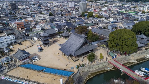 751(天平勝宝3)年、観音菩薩の厚い信仰者だった周防国(山口県)の玖珂庄の藤原皆足姫が、観音菩薩の妙縁を感じて金岡の郷に草庵を開基。千手観音を安置したのが始まりとされる。境内には、多くの古建築が並び、本堂(市指定重文)のほか、牛玉所殿(ごおうしょでん)、石門、仁王門、三重塔(県指定重要文化財)、経蔵の拝観は必見。