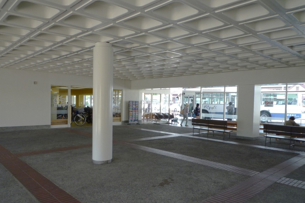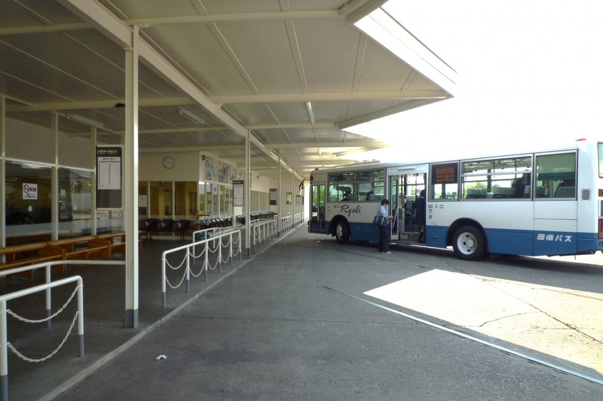 - 西大寺エリアの拠点として、岡山市街や牛窓地区へのバスが発着。朝夕のラッシュ時は通勤客や学生で混雑しますが、それ以外はゆったりとした時間が流れる、郊外のターミナル駅です。バスドライバーの休憩所として使用されている建物は、50年以上前にこの地を走っていた西大寺鉄道の駅舎。敷地内には両備バス車庫や整備場もあります。