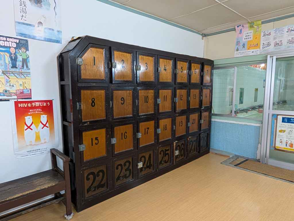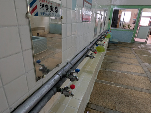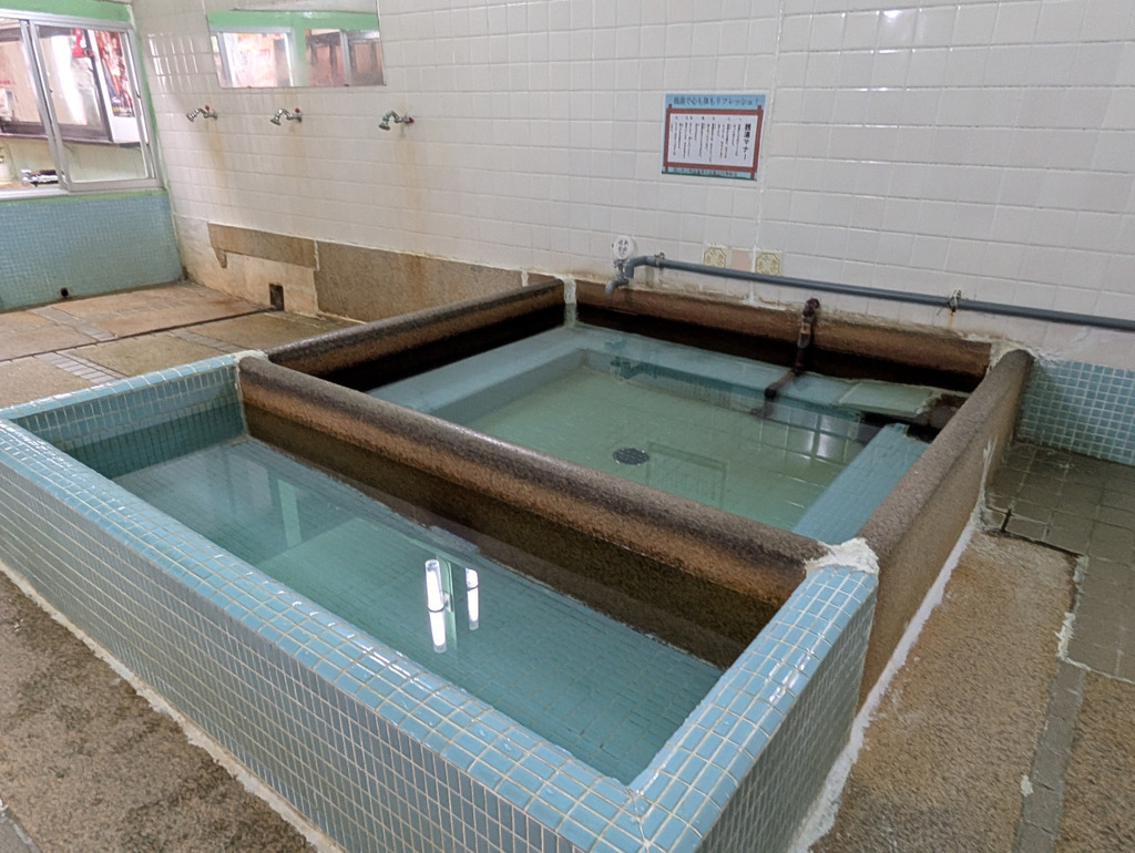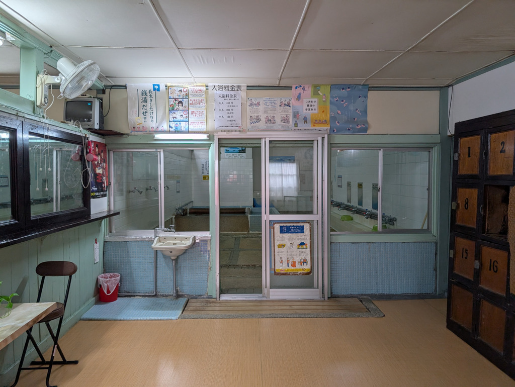 - 戦前から営業している、住宅街にたたずむどこか懐かしい銭湯は、洗い場の石畳や地元の万成石を使った浴槽が特徴です。昭和70年代から変わらない鏡には、当時の広告が残っていたり、木製のロッカーがあったり、のれんを潜るとタイムスリップしたかのような空間が広がります。