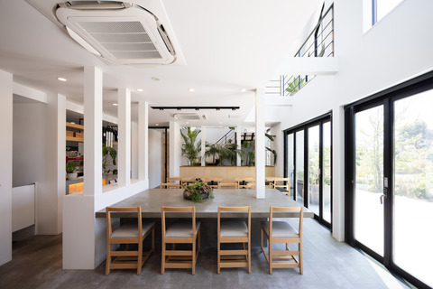田園風景にポツンと都会のブティックのような建物がある。店内の植物や店舗南のガーデンで四季を感じられる、1階カフェ・2階アパレルの複合施設。建築がイタリアのAデザインアワードという世界最大規模のアワード賞でブロンズ賞を受賞。店内も広々としており、特別な空間で様々なシーンで撮影可能。