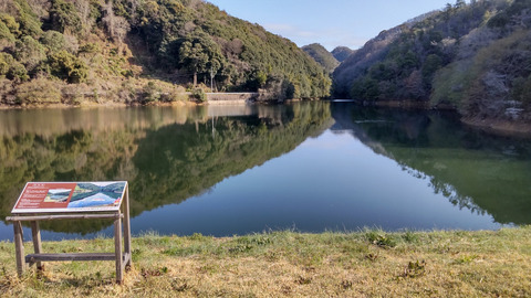 杉谷の渓谷にある杉谷池には139段の階段があり、まるで天空に登るかのように見えることで「天空への階段」と呼ばれています。この階段を登ると、池の水面に波立ちが無い時にだけ見ることができるレアな国内唯一の水鏡の杉谷富士が!また、池の奥の渓谷には、山々が重なってハート形に見える「杉谷ハート山」が見れます。渓谷含めてしあわせ気分になれるダム池の景観がロケにマッチングします。