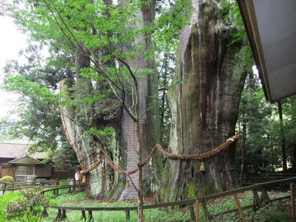 南北の2株が根元でくっついているため、夫婦杉の愛称で親しまれています。