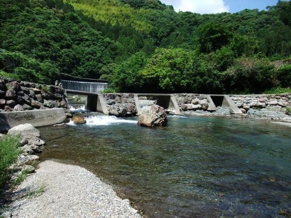 他の沈下橋とは異なる構造の橋げたが特徴的です。